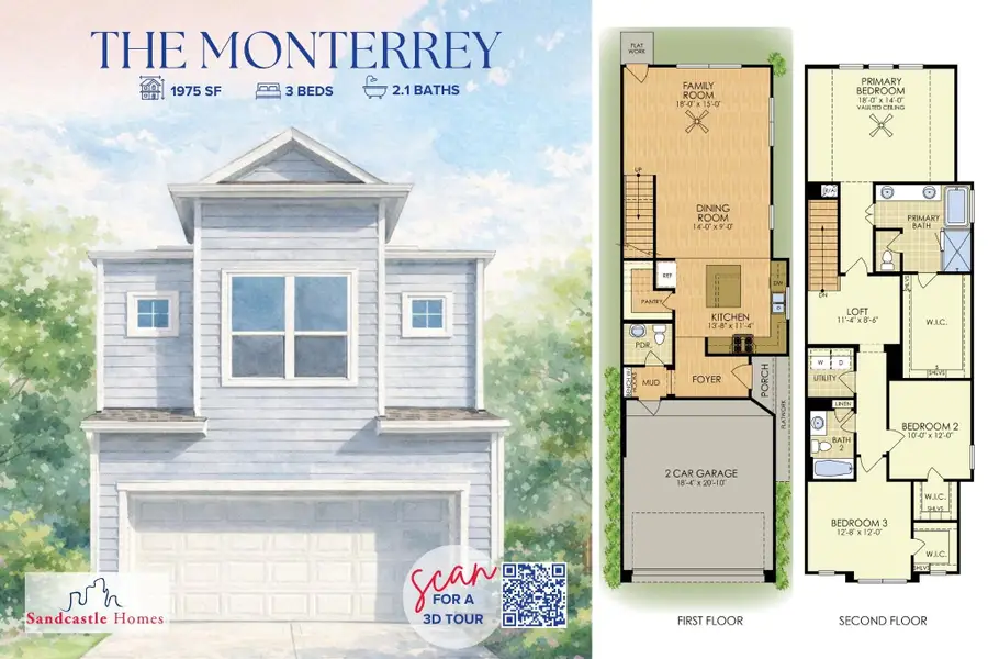 Big pantry. Bigger personality. The Monterrey at Garden Homes on 34th is where charm meets function — and where everyday life just feels a little more elevated. Tucked inside a gated community in the heart of the Garden Oaks area, this is one of seven being built, and with construction still underway, options to personalize may still exist. The kitchen is a genuine showstopper: walls of cabinetry, a generous walk-in pantry, and quartz countertops that make cooking feel like an event. A built-in mudroom and tucked-away powder bath add the kind of thoughtful touches you notice on day one and appreciate for years. Upstairs, an airy loft leads to three spacious bedrooms, including a dreamy primary suite with vaulted ceilings, a spa-style bath, and a closet that feels endless. A two-car garage, fenced yard, on-site dog park, and guest parking mean the lifestyle matches the home. Sandcastle Homes has been getting these details right for 30 years — and the Monterrey is no exception.