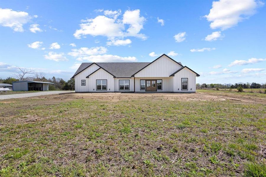 Stunning newly built custom home offering approximately 2,000 square feet of heated and air-conditioned living space and nearly 3,000 square feet under roof. Thoughtfully designed with an open-concept floor plan and soaring vaulted ceilings, this residence delivers a bright, expansive feel that is both elegant and inviting. High-end custom cabinetry throughout showcases exceptional craftsmanship, while spray foam insulation ensures superior energy efficiency, comfort, and quiet living year-round. Every detail has been carefully selected to blend modern luxury with timeless design. Step outside to spacious covered porches—perfect for entertaining or relaxing in style—and enjoy the convenience of two-car covered parking. Located just minutes from Lake Bois d’Arc’s south boat ramp, this prime setting offers effortless access to the water while maintaining privacy and tranquility. Whether you're seeking a refined full-time residence, an upscale weekend retreat, or a premium investment opportunity near the lake, this newly constructed home presents an exceptional opportunity to own modern luxury in a highly desirable location.