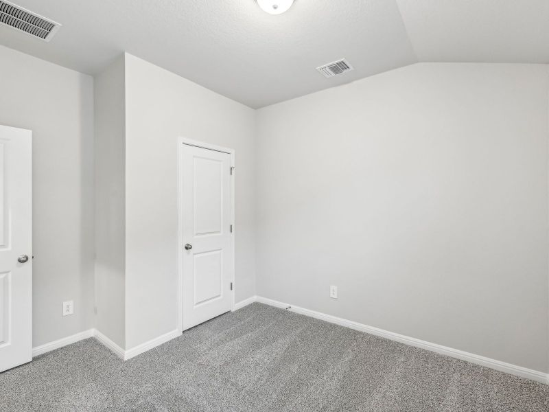 Tucked at the rear of the home, the private primary suite features dual sinks and a generous walk-in closet. Espresso cabinets with Bengal white granite countertops, cool beige EVP flooring, and textured carpet in our Cozy package.