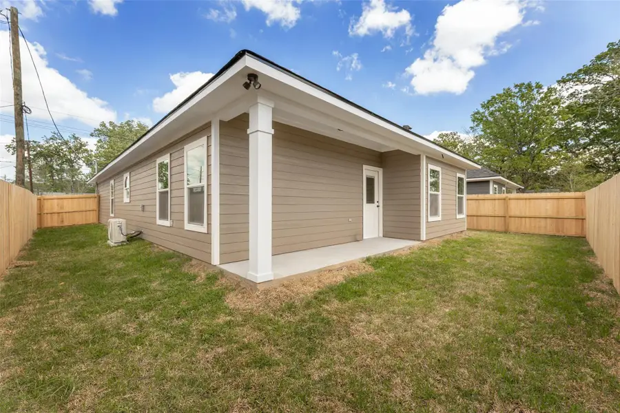 New build in Navasota with a modern grey exterior and great curb appeal! This 3 bed, 2 bath home offers a long driveway leading to a 2-car garage, giving you plenty of space for parking and guests. Inside, you’ll find stained wood cabinetry throughout, adding warmth to the kitchen and bathrooms, along with a nice open feel between the main living areas. The living room features a wood beam accent that gives the space a custom touch. The kitchen offers ample cabinet space and a functional layout, ideal for everyday use. Fresh sod has been installed, making the yard ready to enjoy, and the covered back porch is a great spot to unwind or entertain. Located just minutes from downtown Navasota and with easy access to Highway 6, this home combines convenience with a comfortable setting.