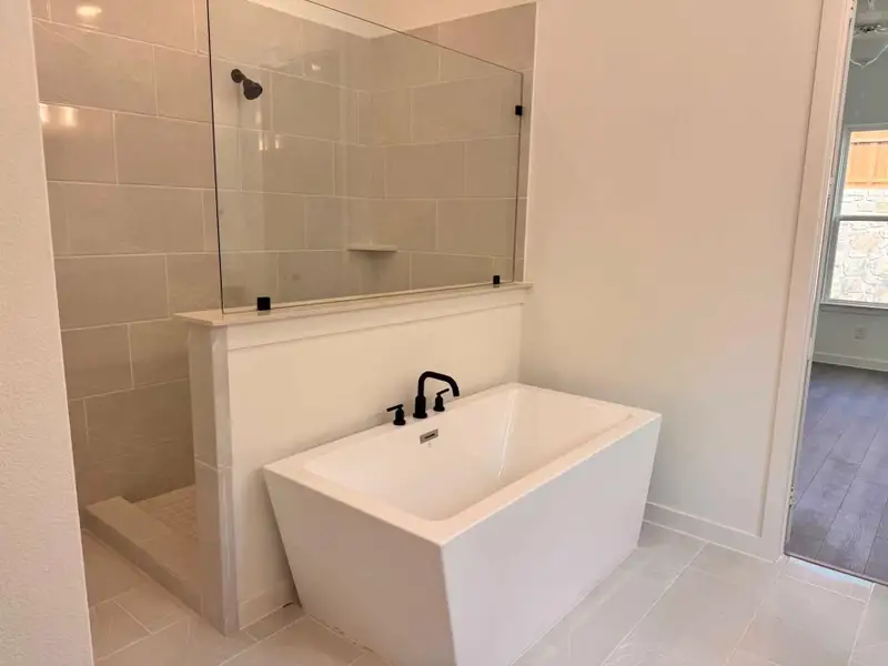 Welcome to this stunning new two-story home in Aster Park, designed with the Noir Collection, this home features high contrasts and gold finishes. Step through the welcoming foyer and discover a spacious secondary bedroom with its own private bath which includes a glass enclosed walk-in shower, conveniently connected to a storage room tucked under the staircase. On the opposite side of the main floor, you'll find a mudroom and utility area, along with a stylish powder room. At the heart of the home is a beautifully designed open-concept layout. The elegant dining room features a tray ceiling and flows seamlessly into a bright, expansive family room filled with natural light from large windows. Just beyond, sliding doors lead to the extended covered patio, creating the perfect space for indoor-outdoor living. The modern kitchen includes shaker-style cabinetry, a large eat-in island, and an oversized, spacious walk-in pantry, providing both beauty and function for daily living and hosting. Also on the first floor is the luxurious primary suite, offering a private retreat complete with a dual-sink vanity, a walk-in shower with mud pan, a freestanding tub, and a generous walk-in closet. Upstairs, a lofty game room with a tray ceiling creates a flexible and inviting space for entertainment or relaxation. Two additional secondary bedrooms are located on this level, each featuring its own private bathroom and closet—perfect for older children, guests, or multi-generational living.
