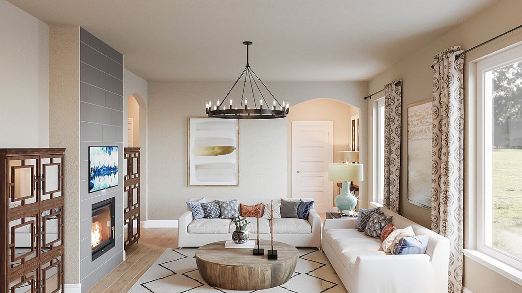 This southeast-facing Salado home is located on an oversized corner homesite. Prepare gourmet meals for your family in the open concept kitchen and great room, and never miss a moment of the fun. The covered patio offers a versatile space that can be used for outdoor dining, entertaining guests, or simply relaxing in the shade.