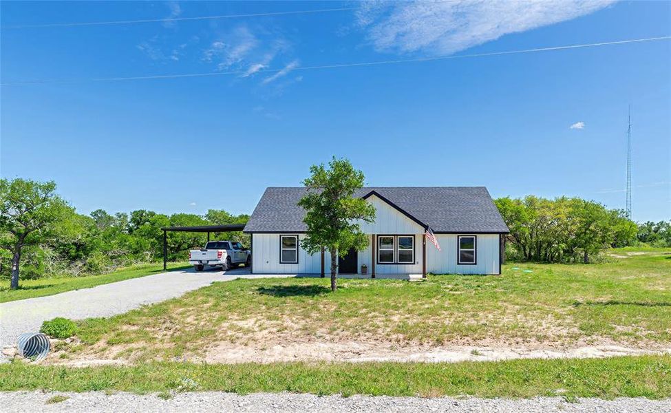 NO HOA! Only 6 months old! This attractive home with an inviting front porch is happily situated on an ONE ACRE lot nestled on a cul-de-sac. Built in 2025 with the builder's 1-2-10 warranty still in place, this home is sure to check all of your boxes. Large open floorplan with wood look tile throughout and carpeted bedrooms. The kitchen boasts stainless steel appliances and granite countertops as well as an large island. The kitchen sink has views of the private covered porch and backyard. The primary bath offers dual vanities, linen storage and walk-in tiled shower. Primary bedroom has overized walk-in closet. The laundry room opens out onto the carport and has an large storage closet. The secondary bedrooms are split from the primary bedroom. Why wait for new construction when you can have like new now? Survey is available. VA assumption for qualified veterans available. Azle ISD.
