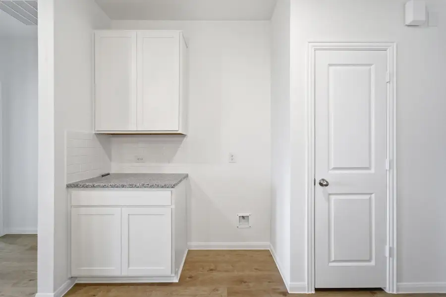 The delightful Ash floor plan is a sprawling, two-story design that is full of character. The exterior of the home is just as beautiful as the interior since the home will have a two-tone paint selection, and an exclusive landscaping package including shrubs, a caliper oak tree, and a yard that is fully sodded. Entering from your front porch, you are greeted by an elegant foyer with vinyl plank flooring that your two-car garage lies beside. Across the foyer is your convenient powder bathroom featuring a white pedestal sink and decorative mirror that flows right into your open-concept family room. The massive family room is perfect for entertaining guests and is boasting ample amount of space. The smell of fresh cookies baking can be experienced from the family room, since the kitchen is opened up facing the living area. The expansive kitchen area is completed with granite countertops, beautiful flat-panel birch cabinets, designer light fixtures, and industry-leading appliances. You will love having the ability to install a kitchen island in the center of the kitchen, if you are needing more counter space. Speaking of more space, your oversized walk-in pantry will come in handy when you need to store all your food, spices, and dog treats. Integrating with your kitchen is your welcoming formal dining space with entry to your backyard in the corner of the room. Giving your backyard added value, you have the option of including a sizable covered patio! Adjacent to your formal dining room is the large Master Bedroom. Leading off the bedroom is your gorgeous master bathroom complete with cabinetry that matches your kitchen selections, cultured marble bath countertops, LED down lighting, and a super shower. Up the stairs, you will come across a large gameroom that is ideal for family game nights, as well as three additional bedrooms, and a secondary full bathroom. The Ash floor plan is sure to fit most any family lifestyle.