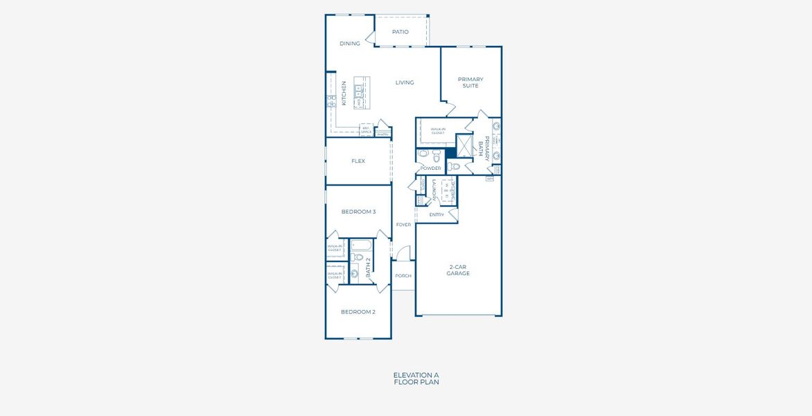 Plan 4013 is a thoughtfully designed single-story home offering approximately 1,942 square feet of living space, combining open-concept living with added functional flexibility. The heart of the home features a spacious kitchen, dining, and living area arranged in an open layout, with direct access to a covered patio—ideal for entertaining and everyday living. The primary suite is privately located at the rear, featuring a large walk-in closet and a well-appointed bath with dual vanities and a walk-in shower. At the front of the home, two secondary bedrooms share a full bath, while a centrally positioned flex room offers versatility as a home office, playroom, or optional study. A dedicated laundry room and 2-car garage are conveniently located near the entry for added functionality.