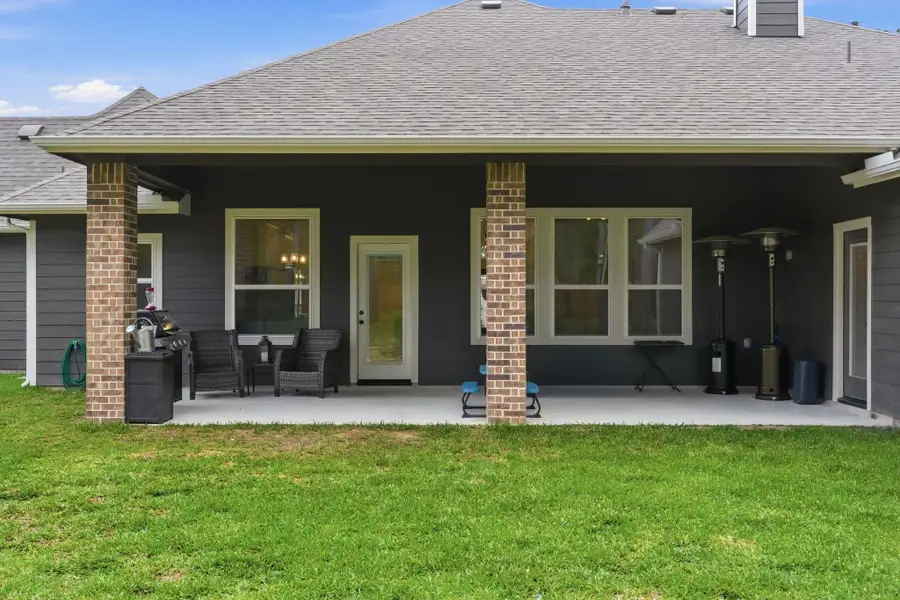 Beautiful, newer home in Conroe, TX. Built in 2025 and set on about ¾ of an acre in a quiet location just outside of town. This 2,219 sq ft home offers 4 bedrooms, 2.5 baths, a 3-car garage, and upgrades you don’t typically get with new construction. The recently installed gutters, cedar privacy fence, and fully fenced backyard create a move-in ready feel. Inside features upgraded tile throughout, carpet in bedrooms, added ceiling fans, and a stone fireplace with propane gas logs. Pre-plumbed for future upgrades including a pot filler, rain shower head, outdoor propane kitchen, and Generac system. The covered back patio (with access from the primary suite) stays shaded all day. Mature trees and frequent bird activity add to the peaceful, private setting.