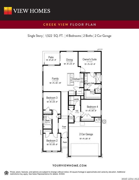 Discover this inviting singlelevel Creek View floorplan, offering 4 bedrooms, 2 baths, and 1,522 sq ft of welldesigned living space. With a 2car garage and an open, functional layout, this home blends comfort, efficiency, and modern style. The main living area features an openconcept design that connects the kitchen, dining, and family room-ideal for both everyday living and entertaining. Natural light fills the space, creating a warm and welcoming atmosphere. The primary suite provides a relaxing retreat with a private ensuite bath and ample closet space. Three additional bedrooms offer flexibility for family, guests, a home office, or hobbies. This thoughtfully crafted singlestory home is perfect for those seeking convenience without sacrificing style. Disclosure All information provided is deemed reliable but not guaranteed. Square footage, floorplan details, features, and availability are subject to change and should be independently verified by the buyer. Renderings, descriptions, and features may include optional upgrades. Buyer is responsible for verifying schools, taxes, HOA details, and all property conditions through inspections.