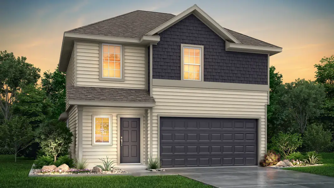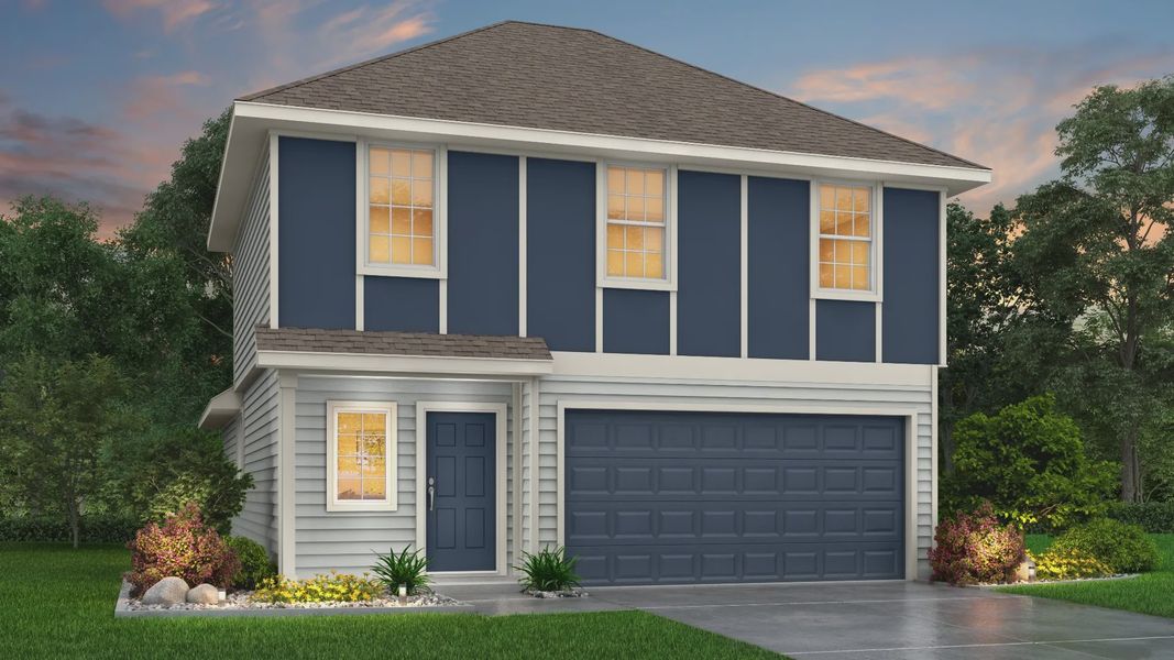 The Lakeland plan is a 2-story home with 4 bedrooms, 2.5 baths, and features a 1st floor primary suite with a sizable walk-in closet in all bedrooms.