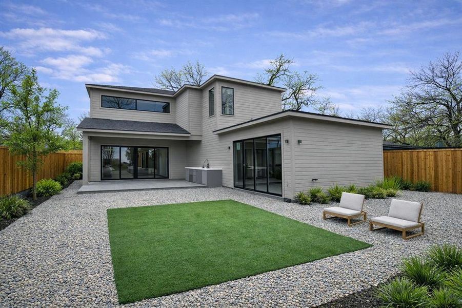 Welcome to this beautifully designed new construction home in the heart of East Dallas. This 5-bedroom residence features a bright, open-concept layout with modern architectural details and thoughtfully selected finishes throughout. The kitchen is designed for both everyday living and entertaining, featuring custom-designed cabinetry, a large waterfall island, stainless steel appliances, and generous counter space. Expansive windows throughout the home allow natural light to fill the living areas, creating a warm and inviting atmosphere.
