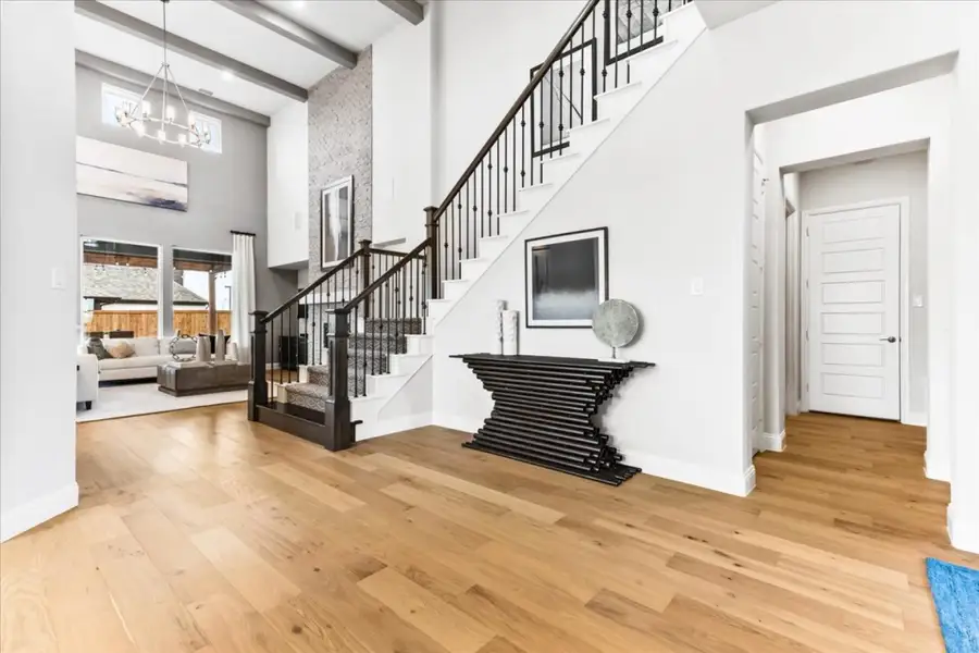 3404 Haygood Road features the spacious Homestead floor plan with 4 bedrooms, 4.5 bathrooms, a private study, game room, media room, and a 3-car garage for added storage and flexibility. The open family room is designed for gathering with a cozy fireplace, added LED disk lighting, and a convenient floor outlet that keeps everyday living and entertaining effortless. A chef-inspired deluxe kitchen shines with stainless steel appliances, 42" upper cabinets, under-cabinet lighting, and a butler’s pantry that adds extra prep and serving space. The home’s drop zone creates a smart, organized entry point for backpacks, shoes, and daily essentials. Retreat to the primary suite featuring a striking pop-up ceiling, while brushed nickel light fixtures add a polished finish throughout. Full gutters around the entire home complete the package.