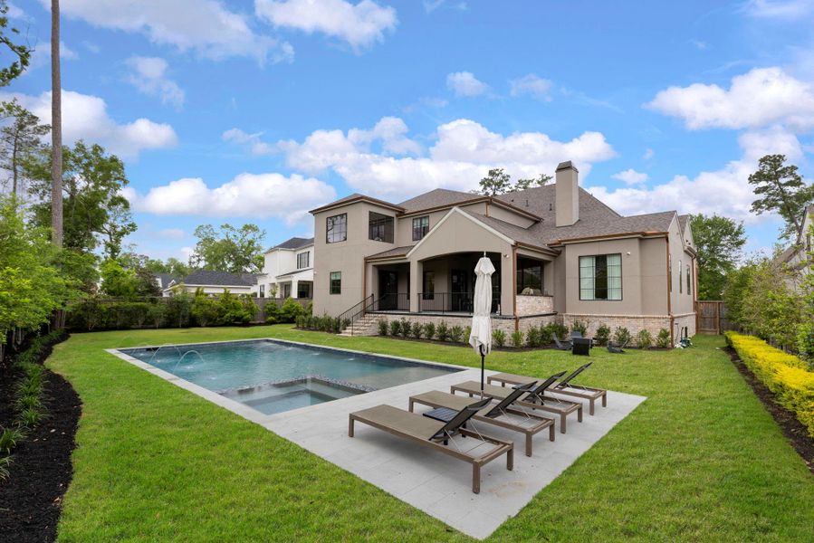 Located in the gated community of Woodlands Reserve, this sophisticated better than new Frankel custom offers 5 bedrooms & 6 full baths w/thoughtfully designed living spaces & high-end finishes throughout. The chef’s kitchen features an oversized island w/marble countertops, custom cabinetry, professional-grade appliances & direct access to the butler’s pantry & bar—ideal for entertaining. Full Wolf/Sub-Zero appl package. Stunning living room showcases vaulted ceilings, built-in shelving & a sleek fireplace, opening to large sliding doors that blend indoor & outdoor living. The private primary suite offers a spa-inspired bath w/soaking tub, walk-in marble shower & separate his-and-her vanities. Upstairs + downstairs game rooms offer flexible spaces provide room for family & guests. Resort-style pool, expansive backyard & covered outdoor living area w/full outdoor kitchen overlooking the pool. Complete w/ 2 utility rooms & located in one of The Woodlands’ premier gated communities.