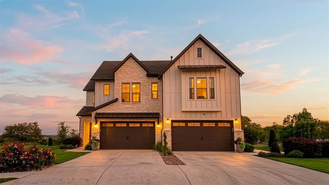 The main-floor primary suite features a tray ceiling, double vanities with framed mirrors, and a mudset shower with floor-to-ceiling tile. A powder bath serves guests with ease. Upstairs, three oversized bedrooms offer the generous space and storage that define a Sitterle Home. The tongue-and-groove covered patio is pre-plumbed for a grill and built for Texas entertaining. Spray foam insulation on exterior walls keeps energy costs low year-round.