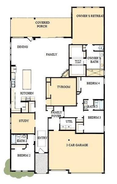 Sunny gathering areas and serene bedrooms contribute to the everyday delight of The Ortega floor plan by David Weekley Homes. Your impressive Owner's Retreat offers a fantastic place to rest and refresh with a contemporary en suite bathroom and walk-in closet.The study presents a sleek opportunity to create a home office, gym, or lounge. Growing and unique styles will find a great place to make their own in the Jack-and-Jill bedrooms.