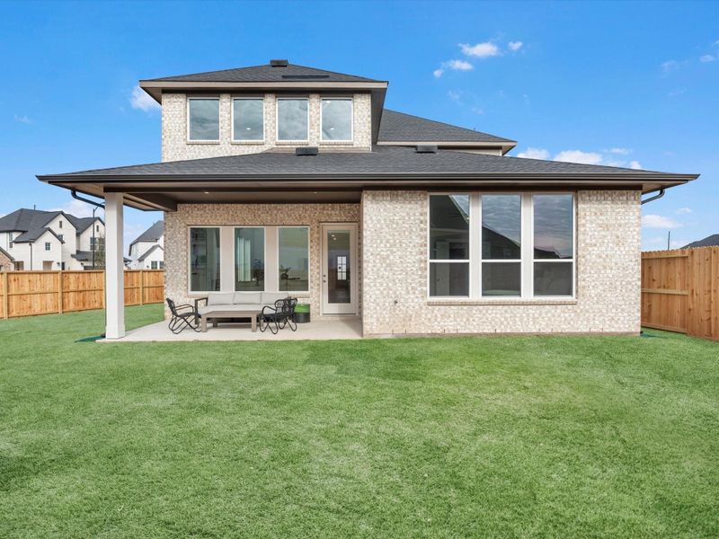 A gallery-style foyer introduces an open main living area where the kitchen, dining area, and great room stay closely connected for everyday routines and easy entertaining. The private primary suite sits on the main level, while the bedroom 5 option expands the upstairs layout for households that need more sleeping space, guest accommodations, or flexible use. A converted first-floor secondary shower, covered patio, exterior gas stub out, and classic chrome selections add everyday function. The kitchen showcases Grey Wolf cabinetry, Andino White granite countertops, Arctic White running-bond backsplash, GE 36" gas cooktop appliances, chrome Coranto Touch faucet, classic chrome water spigot, and under-cabinet lighting. The primary bath includes Andino White granite, Prime White tile, chrome Ashlyn fixtures, and a framed shower enclosure.