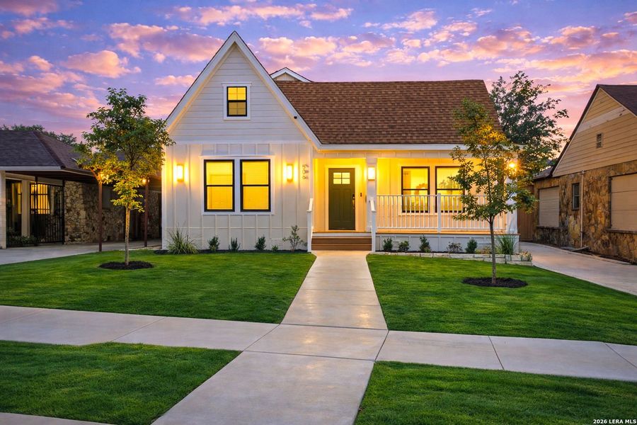 OPEN HOUSE: Sunday, 04/19 from 12 AM to 3 PM! Step into the charm of this beautifully restored 1940s cottage-style home, thoughtfully renovated from top to bottom and classified as new construction by the City of San Antonio while preserving its original character. Located in the rapidly improving Highland Park area and surrounded by revitalized homes, this property blends timeless appeal with modern updates. A huge covered front porch, fresh landscaping with flower beds and sod, and a brand-new driveway and sidewalk create inviting curb appeal. Inside, the open floor plan is filled with natural light from tons of windows, complemented by white oak vinyl flooring and a neutral color palette throughout. The kitchen features smooth countertops, recessed lighting, custom cabinetry, and a central island perfect for gathering. The primary bedroom offers a ceiling fan, walk-in closet, and a full bath with a barn door, separate shower and tub, and double vanity. Additional highlights include side access to a detached garage and a backyard with a privacy fence for added seclusion. Just a few blocks from Fair Avenue, nearby home improvement stores, and with easy access to I-37, this home presents a rare opportunity to own what feels like new construction while enjoying the preserved charm of a classic cottage in one of San Antonio's most promising neighborhoods.