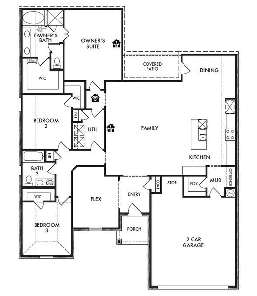 Open-concept design that is great for entertaining. This one-story layout offers lots of storage space, including spacious walk-in closets in each bedroom. The large, walk-in pantry is perfect for a family that loves to entertain. Also offering a covered patio for those Texas summer BBQs.