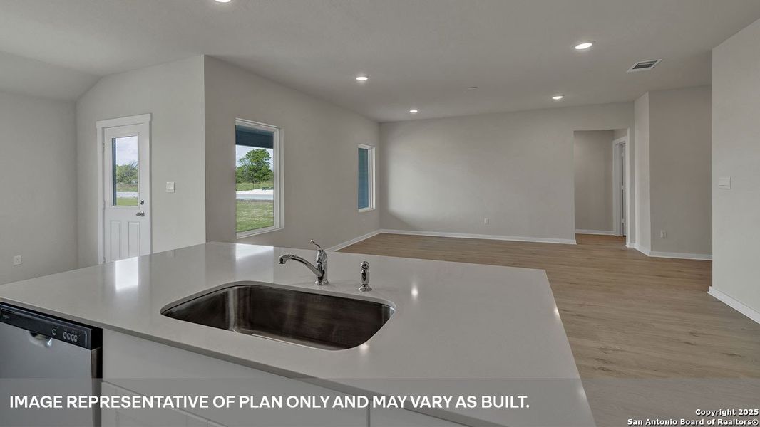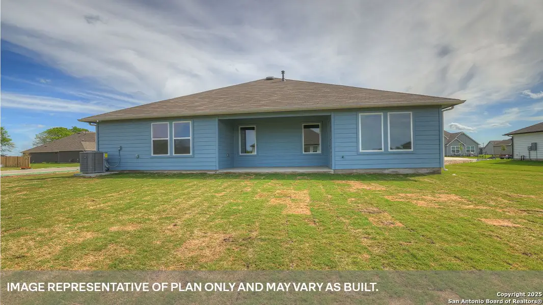 JULY ESTIMATED COMPLETION! Check out the Dean at Hartland Ranch, a one-story floorplan featured in one of our communities in Lockhart, Texas. Designed across 1,885 square feet, this home includes 4 bedrooms and 2 bathrooms and a 3-car garage.. Walk through the covered entryway and make your way down the hall to the main living space. The kitchen, dining and family room are open,built to make cooking, eating, and entertaining a pleasant experience for family and friends. The kitchen includes quartz countertops, decorative tile backsplash, a large island with undermount sink, a corner pantry closet, stainless-steel appliances and 36'' upper cabinets. Enjoy the natural light with four rear windows looking out to the backyard. The secondary bedrooms are located at the front of the house, off the foyer. A small hall leads you to the three bedrooms and one full bathroom. Each bedroom includes a closet, and the bathroom includes a shower/tub combination plus extra shelving for storage or decor. Whether you use these rooms as an office, child's room or guest room, there is plenty of space for work, sleep and play. Off the family room, you'll find the utility room, with extra shelving for all your laundry items. The primary bedroom is tucked away past the utility room, and this private ensuite is sure to be your oasis at the end of a long day. Enjoy the 5' walk in shower, raised cultured marble vanity with double sinks, private toilet area with a door, and walk-in closet in this modern bathroom space. The Dean includes vinyl flooring throughout the common areas of the home and the primary bedroom, and carpet in the secondary bedrooms. All our new homes feature a covered back patio, full sod, an irrigation system in the front and back yard, and full gutters. This home features our America's Smart Home base package, which includes the Video Front Doorbell, Front Door Deadbolt Lock, Home Hub, Thermostat, and a Smart Switch.