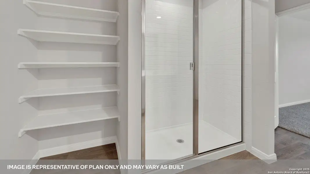 JUNE ESTIMATED COMPLETION. EASY ACCESS TO I-35. The Madison is our largest floorplan available at Whisper South in San Marcos, Texas. This beautiful two-story home features 5 bedrooms, 3 bathrooms, a gameroom, and 2 car garage across 2,497 square feet of modern living space. Our homes in Whisper South feature three-sided masonry exteriors. Entering the home from the covered front porch, you'll cross the foyer to the open concept living space. The kitchen faces out to the dining room and family room, allowing for conversations to flow easily across the room as you make dinner and unwind from your day. Enjoy the 9' ceilings and natural light from the three rear windows. The kitchen features an island with undermount sink, quartz countertops, a pantry closet, 36" upper cabinets, and stainless-steel appliances, including a gas range. A secondary bedroom and full bathroom are located off the kitchen, perfect for your guests or any family member that need their own space. The oversized utility room is also located off the kitchen and includes a closet for extra storage. Ascend the stairs to the second floor and you'll enter the gameroom. This room can easily be set up as another living space or play area for the kids. The primary bedroom is located at the front of the home. This oversized private ensuite includes an extra sitting area as well as an attached bathroom. Enjoy the walk-in shower double vanity with marble counter tops, private toilet area with a door, and an enormous walk-in closet. Three additional bedrooms and a full bathroom complete the upstairs space. Each bedroom has a closet with wood shelving and both secondary bathrooms have a shower/tub combination. The Madison includes vinyl flooring throughout the common areas of the home, and carpet in the bedrooms. All our new homes feature a covered back patio, full sod, irrigation system in the front and back yard, and a 6' privacy fence around the back yard. This home includes our America's Smart Home base package, which includes the Amazon Echo Pop, Front Doorbell, Front Door Deadbolt Lock, Home Hub, Thermostat, and a Smart Switch.