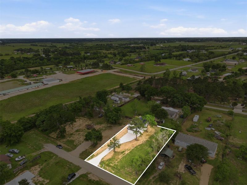 Brand New Custom Build!! This beautiful home features 2,517 sq.ft of living space, 3-beds, 2.5-baths, situated on a over-sized 17,000 sq.ft lot. The kitchen is equipped with custom made cabinets, soft-close hinges, quartz counter tops and energy-efficient stainless steel appliances. The kitchen flows seamlessly into the living room creating an open-concept layout that's perfect for entertaining including a spacious half-bath. All bedrooms, full bathrooms and utility room are located upstairs. Primary suite offers ample space with a large walk-in closet and a balcony where you can relax and watch the sunset. Primary bath is equipped with a large soaking sub, walk-in shower, double sinks all completed with beautiful finishes. The spacious guest bath has a shower-tub combo & lots of cabinet and counter space. Vinyl plank waterproof floors throughout the house and 9ft ceilings. This grand size lot is perfect to create your own outdoor oasis! No HOA! Only 45 minutes to downtown Houston.