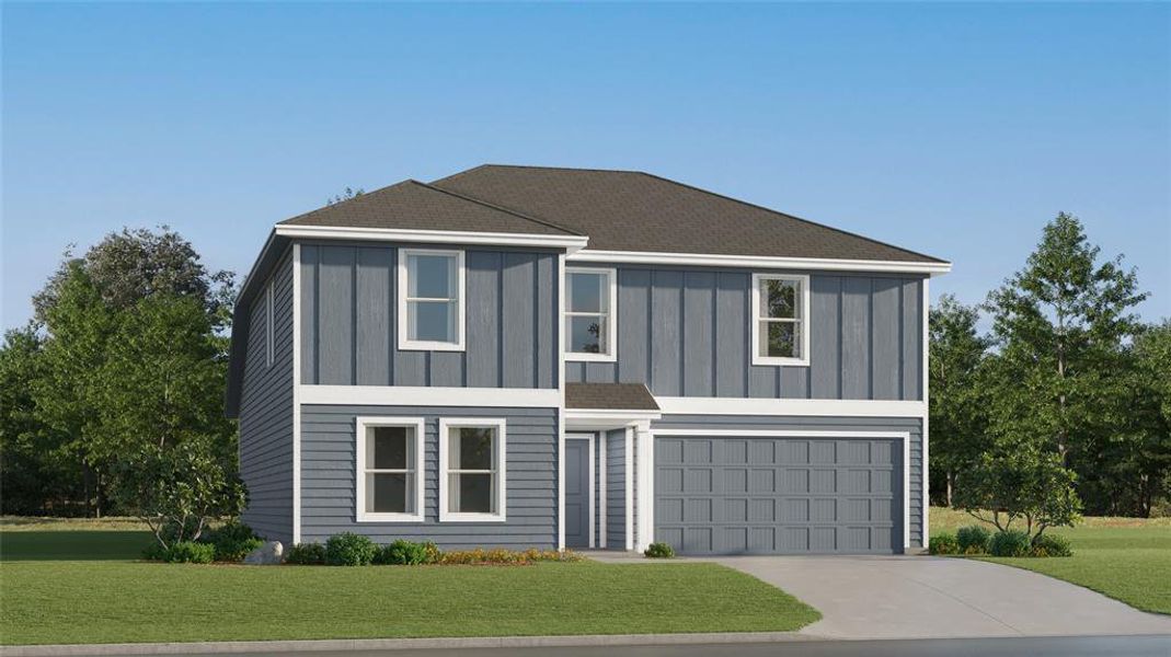 This new two-story home features a convenient owner’s suite on the first floor, complete with a full bathroom and walk-in closet. Another bedroom is located near the foyer, leading to an open-concept floorplan that blends the kitchen, living and dining areas. On the second floor are three additional bedrooms and a versatile loft.