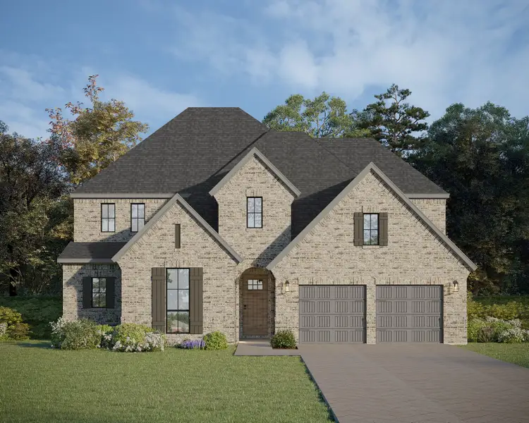 Our best seller in our 60s floorplan line up with 4 bedrooms, 4 full bathrooms, 1 powder bath, dining area, study, game room, media room, outdoor living space with multi-sliding glass doors and 3-car tandem garage situated on an oversized East facing large corner lot, perfect for a pool. Home features a Contemporary European elevation showcasing a popular light gray brick with black window frames, soaring ceilings in foyer and family room with upper windows, loads of kitchen cabinets with a large walk-in pantry, free standing tub, guest suite down with private walk-in shower bath, spacious utility room with sink, room for refrigerator and convenient access to main closet and mud bench. Amenities include upgrades galore like stained wood tread stairs, kitchen cabinets to the ceiling, decorative kitchen wood hood, beautiful quartz counter tops, matte black plumbing and lighting fixtures, beautiful light colored pre-finished wood floors in all main areas downstairs including study and so much more!