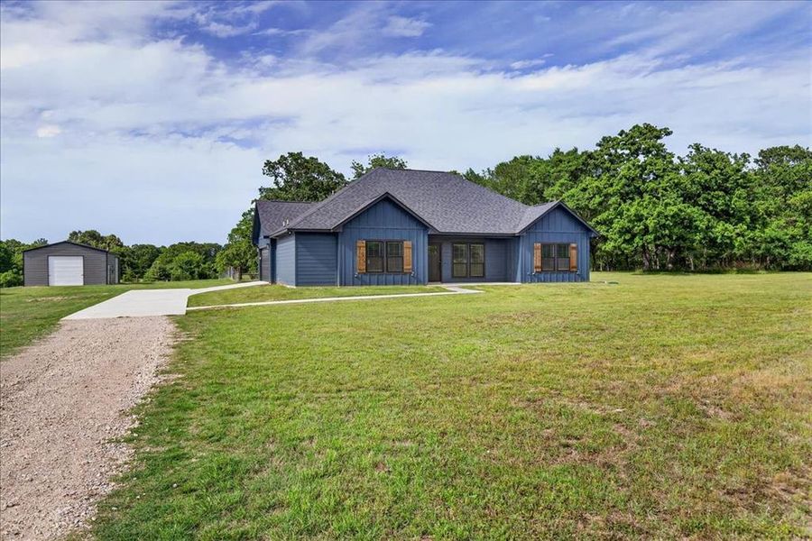 This 2025 custom-built home sits proudly on 12 acres of Texas beauty, where the long, private driveway ensures two things: 1. you’ll feel like you own your own little kingdom, and 2. unexpected guests will have plenty of time to reconsider. Tucked nearly halfway into the property, the home offers privacy without sacrificing practicality.