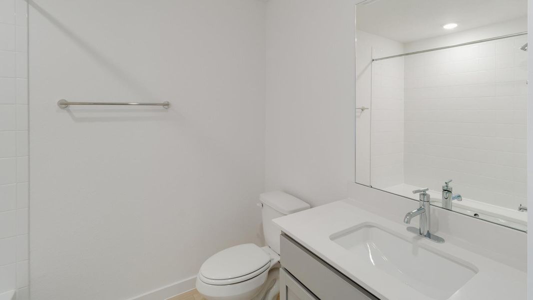 Entering the home from the covered front patio, you'll notice two secondary bedrooms and full bathroom with a shower and bathtub. Making your way down the hall, you'll take attention to the gorgeous kitchen that boasts quartz countertops, and stainless steel appliances that opens up to the living space. The kitchen flows seamlessly into the roomy living area where plenty of memories are sure to be made. The private main bedroom is located towards the back of the home and includes an en-suite with a walk-in shower, a separate toilet room, and a walk-in closet.