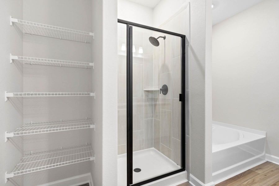 The gorgeous Pintail features three bedrooms, two bathrooms, a laundry room and abundant curb appeal. Hosting friends and family is a breeze in the open-concept Pintail. The chef-ready kitchen features a full suite of Whirlpool appliances, a walk-in pantry, granite countertops, high-grade wood cabinets and recessed LED lighting. An island with a breakfast bar overlooks the sprawling family room, which features plank flooring, a ceiling fan and access to the back yard. To extend the entertainment space, an extended back patio can be used for so much fun! The master suite showcases a spacious attached bathroom with a soaker tub, glass-enclosed shower, sprawling vanity, plus a walk-in closet!