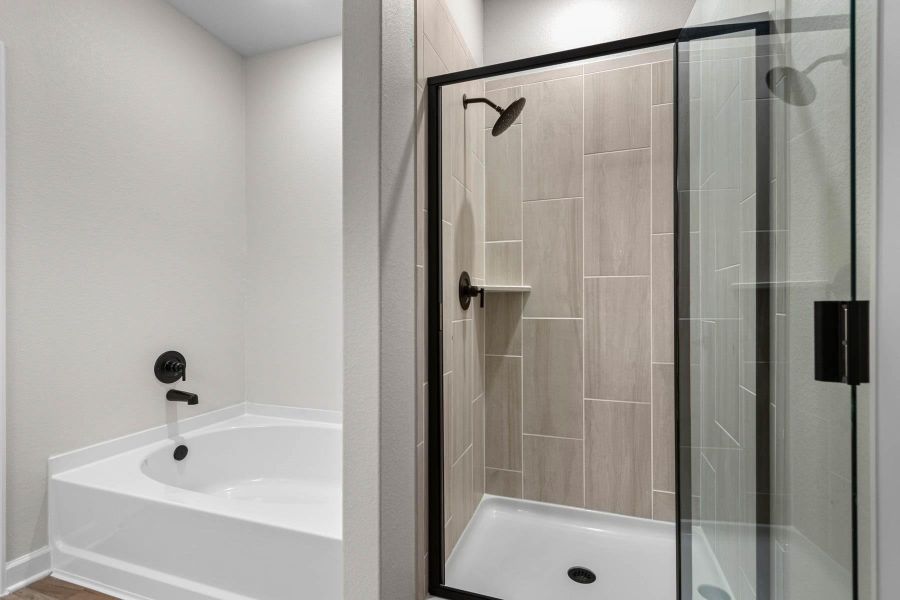 The Alwyn offers three bedrooms, two bathrooms and an impressive selection of upgrades. The open entertaining areas of this home create a comfortable space for entertaining friends and family. The inviting dining room is set off of the kitchen. In the kitchen, a granite-topped island with a breakfast bar provides a beautiful area for serving food or barstool seating. The chef of the family will adore the gorgeous wood cabinets topped with crown molding, the extra-deep undermounted sink, and the full suite of Whirlpool® appliances included in this kitchen at no additional cost! The master bedroom provides a view of the backyard, a spacious attached bathroom with a soaking tub, step in shower and a large walk-in closet.