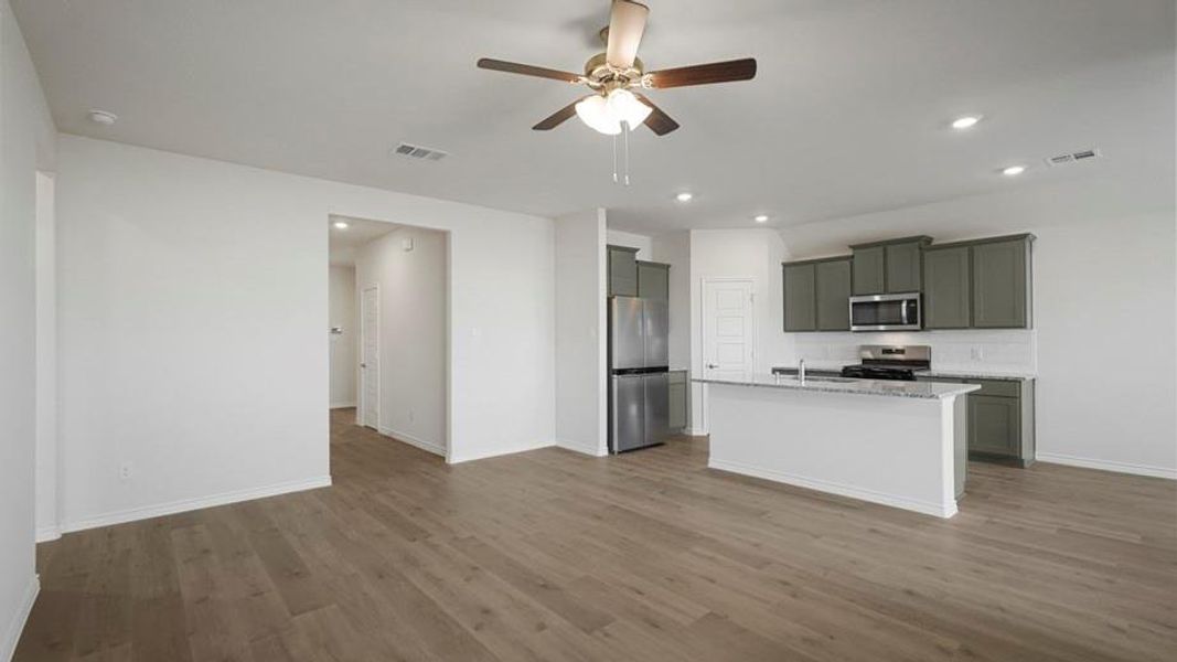 The heart of this home is the expansive kitchen, featuring 36” flat panel cabinets, gleaming granite or quartz countertops, and substantial counterspace perfect for hosting gatherings. Stainless-steel appliances and a large pantry ensure you're always ready for culinary adventures.
