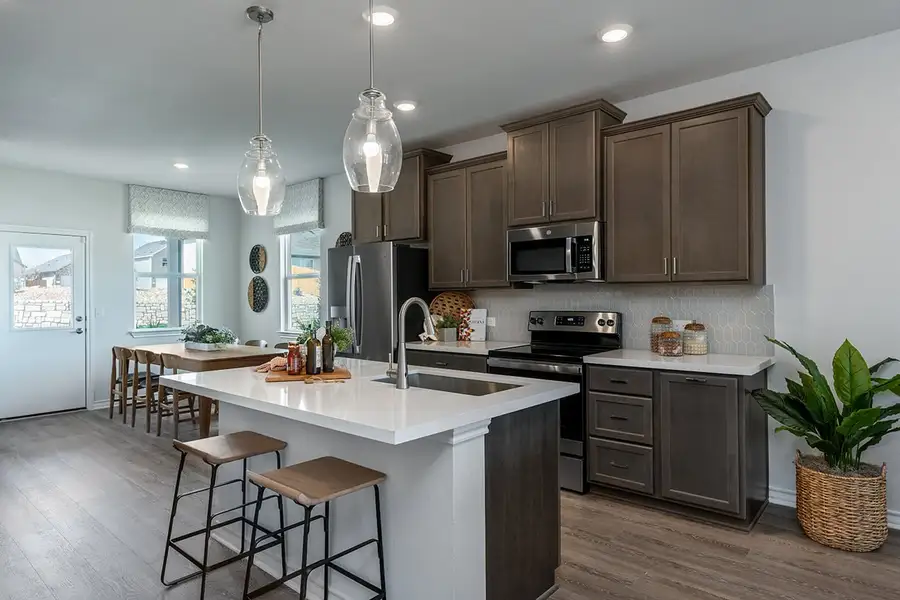 Welcome to the Tartini at 14120 Matterod Drive in Longview! The Tartini floor plan offers a light, bright, and welcoming design that feels both charming and comfortable. Picture-perfect curb appeal shines thanks to the rear-located two-car garage, allowing the front of the home to feel inviting and quaint. Step through the front porch into a sun-filled great room that flows effortlessly into the kitchen and casual dining area, creating a warm space for everyday living and connection. The primary suite at the front of the home feels like a gentle retreat, complete with a spa-inspired bath and generous walk-in closet. A convenient laundry room and half bath sit just off the garage entry, while upstairs you will find two additional bedrooms, a shared bath, and a cheerful game room perfect for relaxed moments. Set within a friendly, thoughtfully designed community, this home is surrounded by neighborly charm and comfortable shared spaces that make it easy to feel right at home. Longview is now selling in Del Valle, TX! This vibrant community is close to the airport, so your next adventure is always nearby. Enjoy a beach entry pool, playscapes, pickleball courts, a sports field, lush trails, and beautiful pocket parks. Explore the Monarch Butterfly and Rain Gardens or gather at the Amenity Center—there’s something for everyone. Additional Highlights Include: Covered outdoor living, tankless water heater, and whole house blinds. Photos are for representative purposes only.
