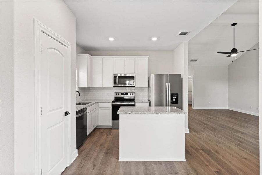- DishwasherMicrowave OvenRefrigeratorWater FilterDisposalElectric CooktopGranite countertopKitchen IslandKitchen RangeElectric Oven
