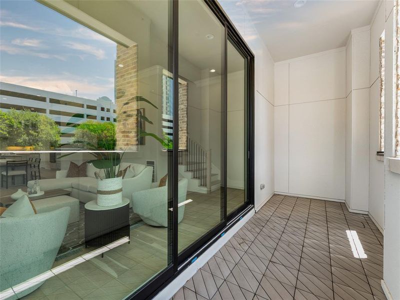 MOVE-IN READY! At over 3000 square feet, this exceptional 3-bedroom, 3.5-bath townhome by InTown Homes boasts the largest floorplan in the entire community, offering unparalleled space and comfort. Ideally located just steps from dining, entertainment, and the DART, it also provides quick access to major highways for effortless commuting across the metroplex. Inside, you’ll find a light-filled open floor plan with sophisticated finishes and engineered hardwood floors throughout. The main level features soaring 12-foot ceilings, a flex room perfect for an office or media space, and a 10-foot sliding panel door that leads to a private balcony. The sleek kitchen is a chef’s dream, featuring Fisher & Paykel appliances, quartz countertops, stacked upper cabinetry, an appliance garage, and a designer tile backsplash. The spacious primary suite includes a spa-like bathroom and an expansive walk-in closet. Entertain with ease on the stunning rooftop terrace, and enjoy the community's lush courtyard and resort-style pool. PLEASE VISIT THE MODEL HOME LOCATED AT 5453 PATTERSON FOR SHOWINGS AND OPEN HOUSES.