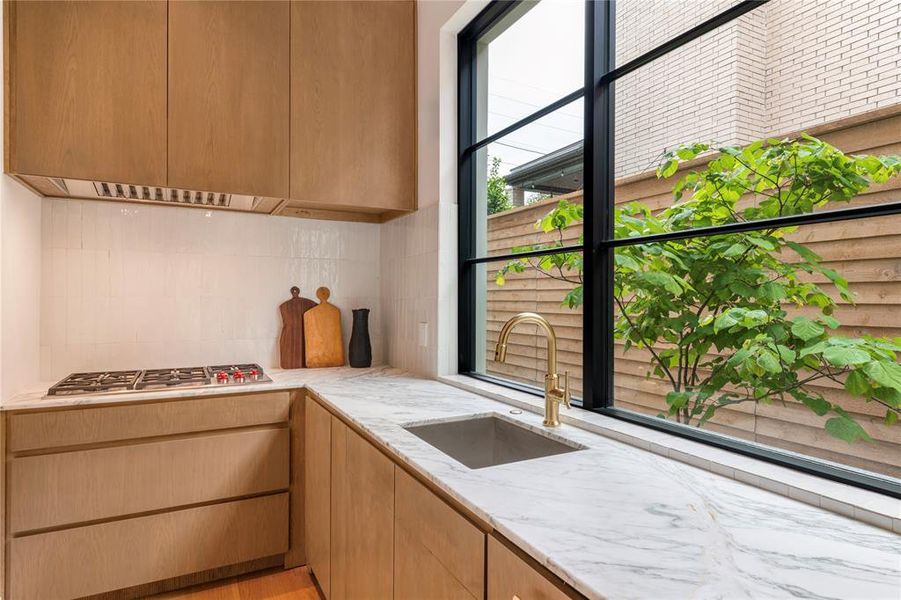 Introducing an exceptional new construction in University Park by Shaw Building Group, with interiors curated by Swoon Interiors. Crisp architectural lines soften into warmth through natural materials, yielding a residence that feels simultaneously elevated and effortlessly livable. A welcoming entry establishes the tone immediately with soft, segmented arched openings framed in white oak millwork flow into a series of beautifully connected living spaces. Chevron wood floors inlaid with brass trim greet you underfoot, while a refined palette of natural marble and oak carries with quiet consistency throughout. At the heart of the home, the kitchen is designed for both daily life and gracious entertaining. White oak custom cabinetry and marble countertops are appointed with a complete suite of Wolf and Sub-Zero appliances. A hidden scullery with a fully equipped and thoughtfully concealed, allows hosting to unfold seamlessly while preserving the home’s clean, tailored aesthetic. The space opens effortlessly toward the main living and dining areas, where sliding doors dissolve the boundary between interior and an expansive limestone loggia beyond. The parlor invites a more intimate atmosphere, anchored by a stunning scalloped walnut millwork wall that connects directly to the bar, a striking vignette within the home’s open yet intentional layout. Outdoors, the vision continues with a pool, turf yard, outdoor kitchen, and a covered gathering area complete with temperature control and double retractable screens, purpose-built for low-maintenance, year-round enjoyment. 3517 Villanova represents a rare opportunity to own a home where every considered detail integrates without effort, resulting in something that feels both deliberate and timeless. Situated within Highland Park ISD, moments from Hyer Elementary and steps to Coffee Park, this one simply cannot be missed.