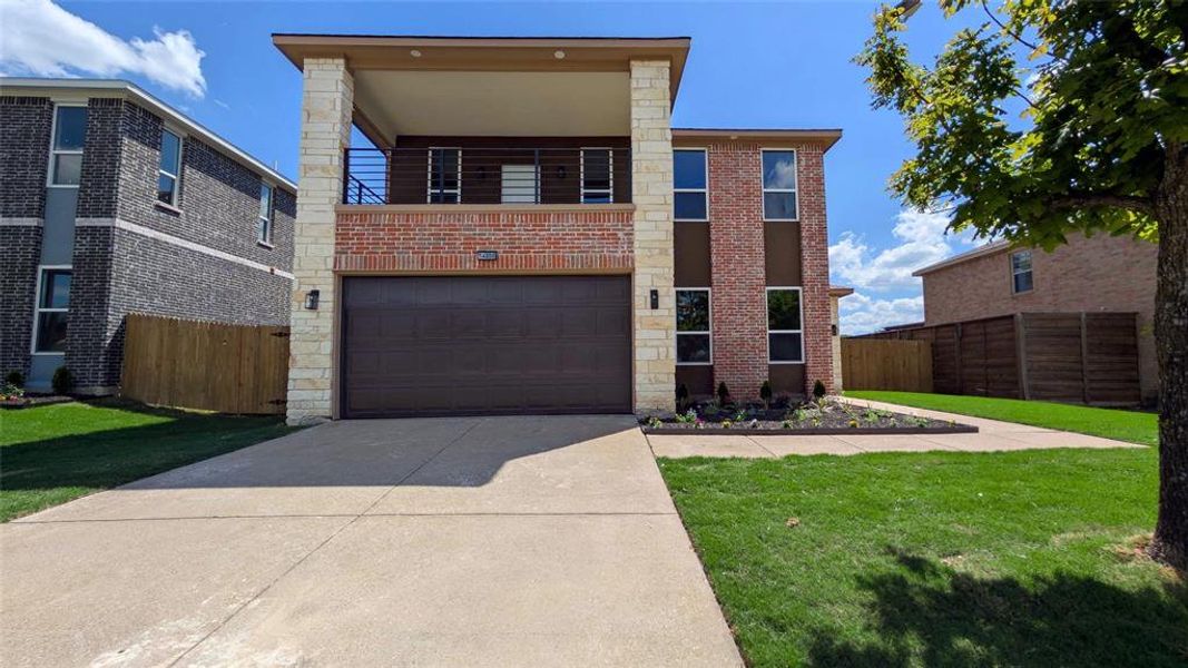 Why settle for the limitations of a generic, one-size-fits-all production home when you can own a residence designed for true distinction? This property is the total opposite of a cookie-cutter house. Every square inch of this 3,223-square-foot brick home has been meticulously engineered & intentionally crafted to offer an upscale, bespoke living experience that stands in a league of its own. Built from the slab up, this Nearly-new construction focuses on soaring volume & architectural scale. The main level welcomes you with 10-foot ceilings, while the second story maintains an airy 9-foot height—proportions rarely found in standard builds. The expansive floor plan is a masterpiece of functional design, specifically tailored for modern or multigenerational families. With five spacious bedrooms & three full baths, the layout features a rare dual-primary configuration—one on each level—alongside a versatile first-floor in-law suite with its own private, connected bathroom. The heart of the home is a chef-inspired kitchen that prioritizes both beauty & durability, featuring custom double-layered designer plywood cabinetry with built-in water fall island. This culinary space is anchored by a sleek waterfall granite island and outfitted with premium stainless-steel appliances & a custom-organized designer pantry. Upstairs, the massive multipurpose loft serves as a grand secondary living area, flowing seamlessly onto a rare, oversized balcony with panoramic views that are unmatched in the neighborhood. Beyond the aesthetics, the home’s infrastructure reflects the highest standards of modern engineering, including energy-efficient dual HVAC systems, a brand-new roof, & elegant coffered ceiling detail. Completed with a full-property sprinkler system, fresh sod, & a new privacy fence, this residence offers a turn-key luxury lifestyle in a peaceful, established setting.