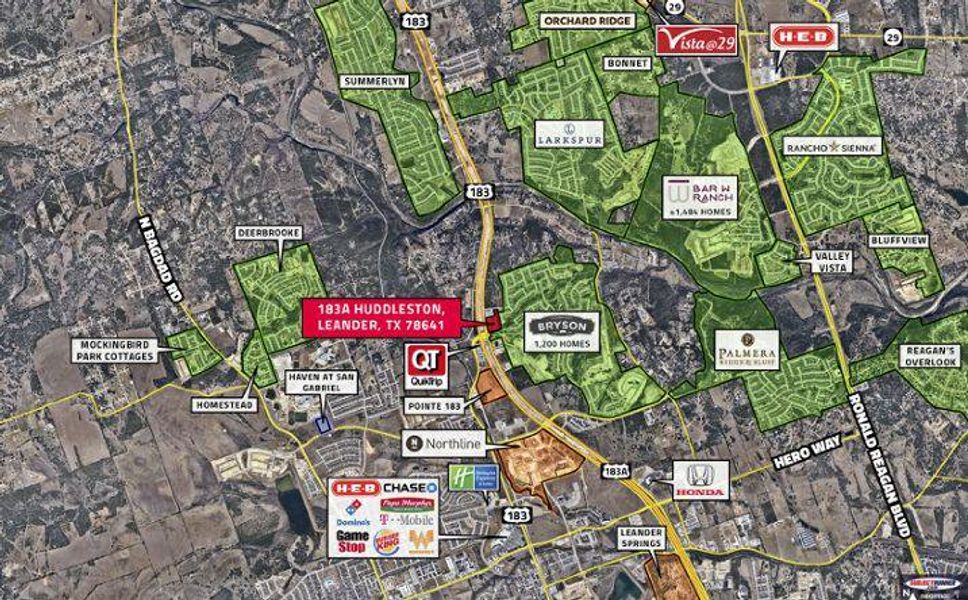 With easy access to US-183 and Route 183A, Downtown Austin and Austin-Bergstrom Airport are roughly 30 minutes away. Steps from Leander's exciting North Mile development, with a new Costco and one of the largest Target stores in the nation coming soon.