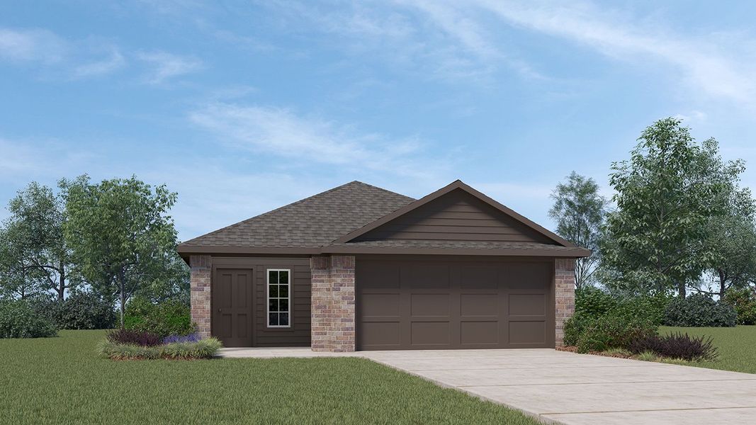 Step into this inviting Traditions Series home, where comfort meets effortless entertaining. The striking exterior, with its custom elevation and kiln-fired brick, sets the stage for what lies within. (Some elevations also include stone and siding.) Greet guests on the covered porch, then through the raised panel fiberglass insulated door, into a welcoming foyer.