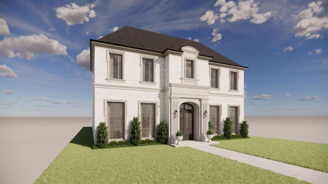 Incredible opportunity for a new construction residence by Langford Custom Homes located in University Park on a 60’ x 140’ lot. The stately elevation features a custom cast stone entry and window surrounds complemented by buff Winterstone brick, 10’ custom iron double doors, and Sierra Pacific windows. At the entry you are greeted by a formal foyer featuring an art wall and solid white oak herringbone inlay flooring, followed by a private office area with matching steel doors, dining room and powder bath. The kitchen includes a custom-made stainless and brass hood, white oak island, natural quartzite Taj Mahal countertops and backsplash PLUS a full prep kitchen - both fully equipped with Wolf - Subzero appliances including additional cooking, wine storage with refrigeration, second fire clay sink and dishwasher. The large breakfast area and open living area feature a wood burning Isokern fireplace and a Sierra Pacific sliding door system opening to a large patio with fireplace, pool-sized yard and professionally designed landscaping with privacy trees by T2 Outdoors. The floor plan includes a mudroom with custom lockers, an additional half bath with backyard access, 2-car garage and a secure access gate with Wi-Fi enabled controls. Upstairs includes 5 bedrooms, each with ensuite bath, laundry room and a large game room featuring built-in storage, an AV closet and dedicated half bathroom. The Primary bedroom features vaulted ceilings with white oak beams, a separate seating area, natural Riad marble, dual walk-in showers and white oak cabinetry. Finish out details include solid white oak flooring throughout, white oak beam details, natural gas lanterns, Brizo and Phylrich plumbing, Visual Comfort lighting, custom cabinetry, extensive landscaping and private front parking pad. Construction is planned for completion in July 2026 and ready for occupancy for the upcoming school year in HPISD.