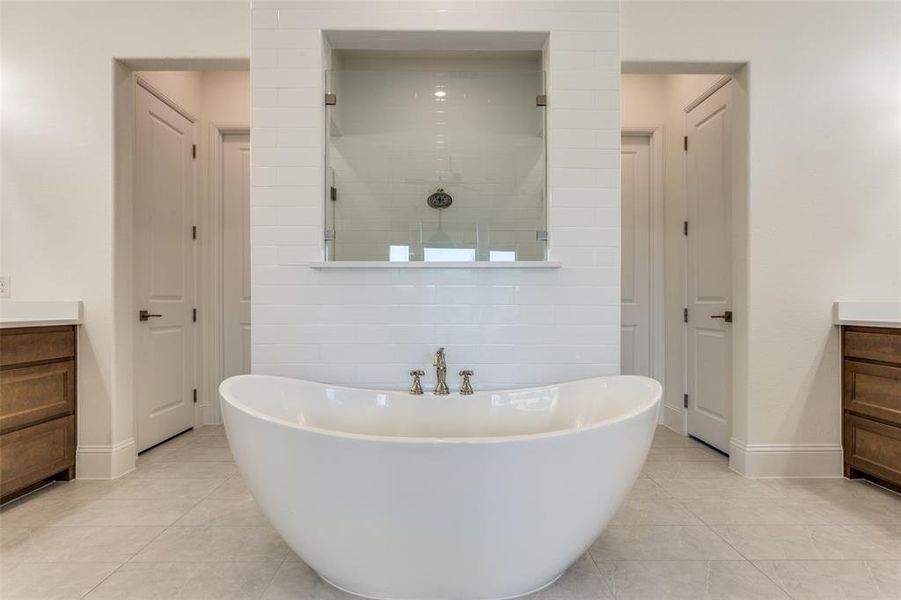 The kitchen is built for the way families actually live. Quartzite countertops, extended cabinetry with premium hardware, a walk-in pantry, and an additional display hutch give you both the storage and the style. The primary suite is a true retreat, featuring an extended walk-in shower, a freestanding soaking tub, and the kind of finishes you’d expect in a luxury build. Solid core doors and additional interior insulation run throughout the entire home, making it noticeably quieter and more energy efficient than standard new construction. Both garages feature coated and finished concrete floors, and outside you’ll find an upgraded irrigation system and a stone-bordered front flower bed that adds great curb appeal.