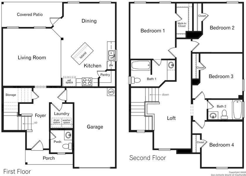 The Bowie plan is one of our two-story homes featured in our Redbird Ranch community in San Antonio, TX. This new home layout offers 3 classic front exteriors, 4 bedrooms, 2.5 bathrooms, a 1-car garage and 1839 square feet of comfortable living. An inviting front porch invites you to step inside The Bowie where you will find a foyer opening to a combined living room, dining room and kitchen area. You'll enjoy preparing meals in your modern kitchen with stainless steel appliances, quartz countertops and shaker style cabinets. Spend time together gathered around the large kitchen island with plenty of workspace and room for bar seating. A spacious loft or game room is located at the top of the stairs, providing plenty of room for countless game nights or movie nights. You will also find all bedrooms and a second full bathroom upstairs. Located toward the back of the home, your primary bedroom features an attractive attached bathroom with a combined bathtub and shower, a single vanity sink with a spacious quartz countertop and a walk-in closet. Head back downstairs and find an under-the-stairs storage closet, a spacious laundry room and a covered patio (per plan) located off the back of the home, perfect for relaxing and enjoying your fully landscaped and irrigated yard. Additional features of The Bowie include sheet vinyl at entry, downstairs living areas and wet areas and quartz countertops and shaker style cabinetry throughoutt the home. This home includes our HOME IS CONNECTED base package. Using one central hub that talks to all the devices in your home, you can control the lights, thermostat and locks, all from your cellular device.