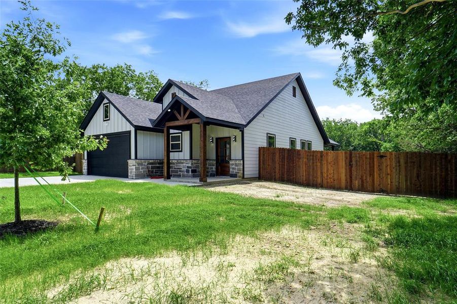 MUST SEE!! Looking for a new construction with a big lot and NO HOA and away from the city but still close to major highways for easy commute, dining and shopping, Look no more this property offers an open floor plan with a cozy fireplace, high ceilings, luxury vinyl flooring, decorative lighting, Kitchen has plenty of cabinet space and large island and walk in pantry, owners suite features boxed ceilings and bathroom with double sink, oversize shower. Front and back covered porch for family entertaining and a big backyard with side entrance for your RV and or trailer parking. Bring your buyers for a private tour.