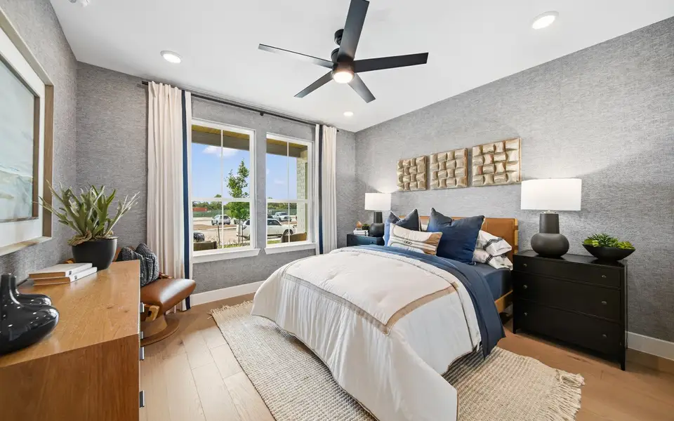 With an impressive two-story entryway, the Lawrence makes it easy to live graciously. This 4 bedroom, 3 bath home floods the open-concept living room and kitchen with light from the backyard and covered patio. The primary suite offers a soaring tray ceiling that draws the eye upward. Don't miss the extended understair storage in the primary closet, or the optional door to the utility room, designed to make laundry a little easier. If you have older guests who don't want to climb stairs, the downstairs study can be configured as an optional 5th bedroom. Upstairs, the gameroom is open to the living area below. Two additional bedrooms share a Jack-and-Jill bathroom.