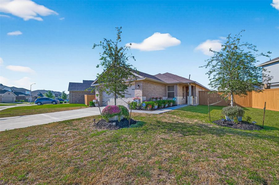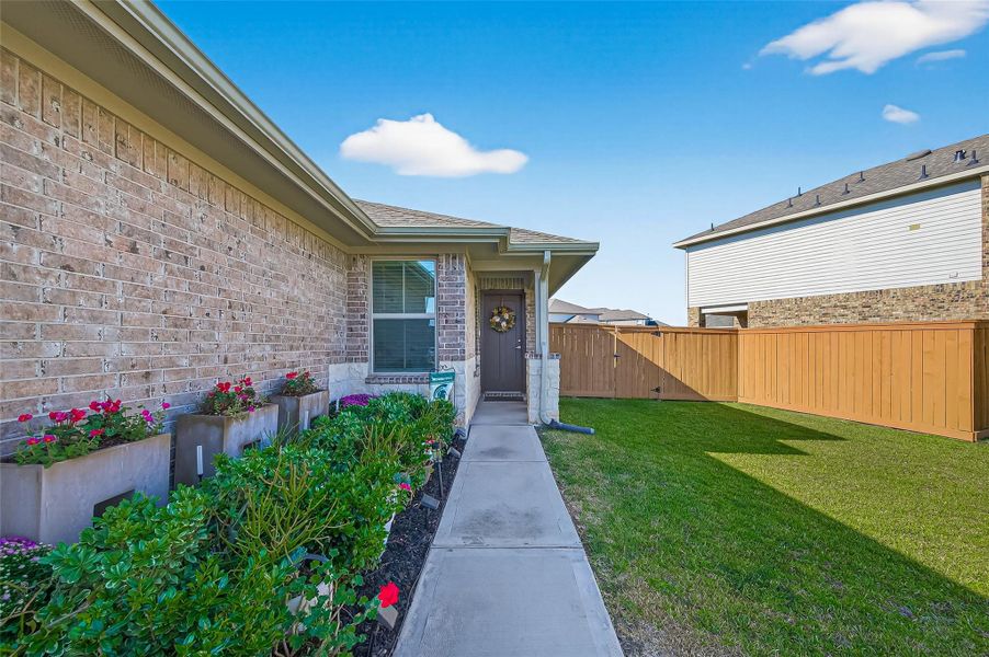 Charming 3-bedroom, 2-bath brick home in the master-planned community of Sunterra! Enjoy resort-style living with access to the crystal-clear blue lagoon, lazy river,clubhouse, pool, GREENBOLT trails & playgrounds. This home stands out with custom upgrades unlike new builds nearby—featuring designer accent walls, upgraded finishes, and stainless steel appliances.The open-concept layout connects a spacious living area to a modern kitchen with a large island, stylish backsplash & upgraded cabinetry. Relax in the primary suite with an oversized soaking tub, walk-in shower, dual vanities & large closet. Situated on an oversized lot with plenty of backyard space for entertaining or future outdoor projects. Zoned to top-rated Katy ISD schools with easy access to Grand Parkway (99) & I-10 for a convenient commute. Experience luxury, comfort & community in one of Katy’s most desirable neighborhoods. Beautifully maintained and covered under builder warranty—this Sunterra home truly has it all!