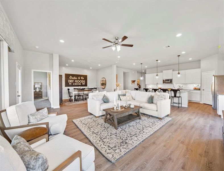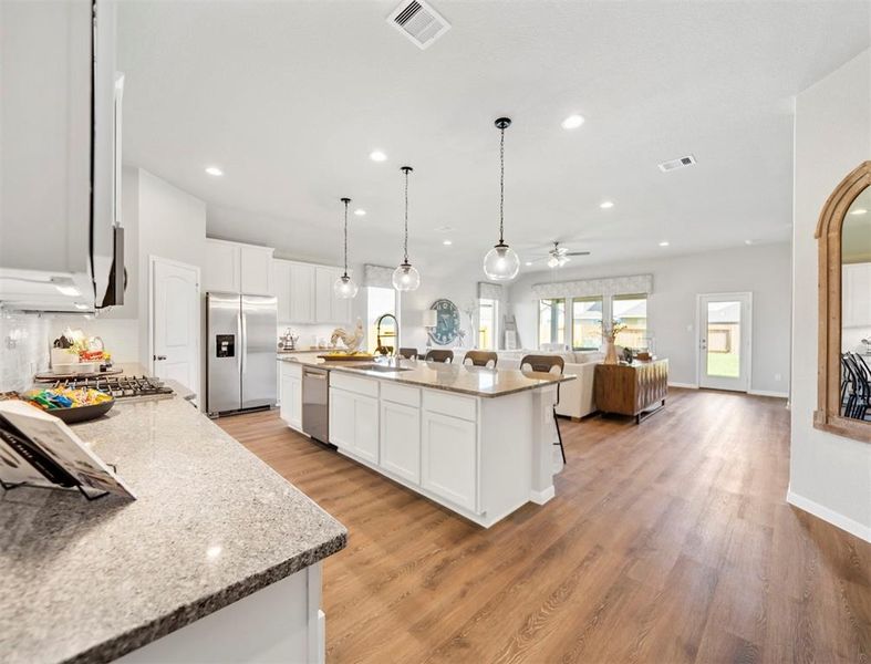 NO BACK NEIGHBORS! OVERSIZED GREENBELT HOMESITE! You'll love the modern finishes in this 2620 sq.ft. 1 story! New DR Horton Home boasts 4 Bed, 3 Ba, Dining, Study & 2 Car Garage! Walk into this Chefs Dream Kitchen w/ an 11' island! Open Concept Living at its finest! Designer features include 42" Shaker Cabinets, Exotic Granite, White Subway tile backsplash, 5 Burner Gas Range w/ Gas Oven in S.S. , 7" Vinyl Wood Plank, Updg Tile Surrounds in baths, Framelss Shower in Primary Bath, Smart Home System, Deako Smart Switches, 8' Interior Doors w/ 5" Baseboards, Full Sprinkler System, Full Sod, Garage Door Opener, Tankless Water Heater, LED Lighting, HUGE Covered Patio!!