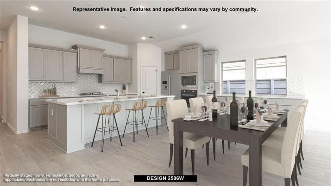 PERRY HOMES NEW CONSTRUCTION! Home office with French doors set at entry with 12-foot ceiling. Open kitchen offers generous counter space, corner walk-in pantry and inviting island with built-in seating space. Dining area flows into open family room with wall of windows and a wood mantel fireplace. Spacious primary suite. Double doors lead to primary bath with dual vanities, garden tub, separate glass-enclosed shower and two walk-in closets. Guest suite. Walk-in closets in all bedrooms. Covered backyard patio. Mud room off two-car garage.