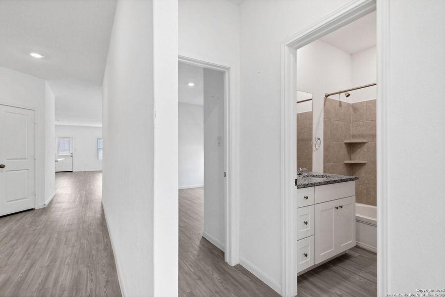 Almost new home built in 2023 offering 4 bedrooms and 3 full baths. AGENTS PLEASE KNOW THERE IS A PREFERRED LENDER FOR THIS HOME THAT WILL PAY A ONE YEAR RATE BUYDOWN FOR THE BUYER. Amazing neighborhood with amazing amenities including an infinity pool, junior Olympic-sized lap pool, splash pad, fishing pond with pier, fitness center, clubhouse, hiking and biking trails, sport court, community organized events, and playgrounds. Truly a special neighborhood. Island kitchen with stainless appliances and tile backsplash. Granite counters in kitchen and bathrooms. Faux wood flooring throughout. No carpet for easy cleaning. 2 inch blinds are included. Energy efficient with a tankless water heater for on-demand hot water, 16+ seer AC, Energy Star Appliances, and radiant barrier. Sprinkler system. Gorgeous.
