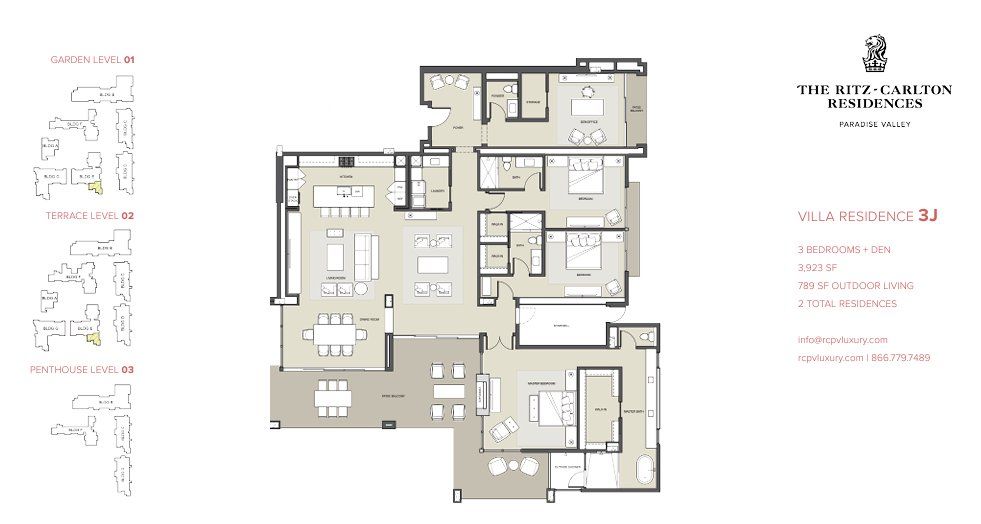 The Residence 3J floor plan is part of The Ritz-Carlton Residences Paradise Valley, a new home community by Five Star Development, located in Paradise Valley, AZ. Visit the The Ritz-Carlton Residences Paradise Valley community page for full neighborhood insights, including nearby schools, shopping, walk & bike-scores, commuting, air quality & natural hazards.