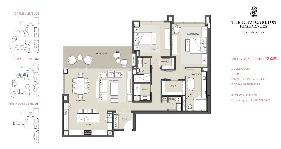 The Residence 2AB floor plan is part of The Ritz-Carlton Residences Paradise Valley, a new home community by Five Star Development, located in Paradise Valley, AZ. Visit the The Ritz-Carlton Residences Paradise Valley community page for full neighborhood insights, including nearby schools, shopping, walk & bike-scores, commuting, air quality & natural hazards.