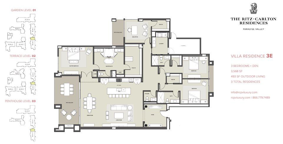 The Residence 3E floor plan is part of The Ritz-Carlton Residences Paradise Valley, a new home community by Five Star Development, located in Paradise Valley, AZ. Visit the The Ritz-Carlton Residences Paradise Valley community page for full neighborhood insights, including nearby schools, shopping, walk & bike-scores, commuting, air quality & natural hazards.