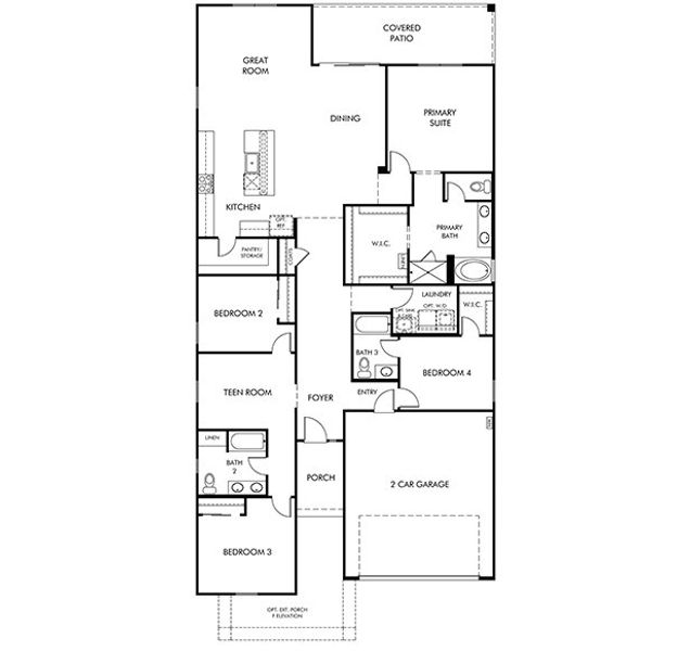 The Lark is a 4 bedroom 3 bath home featuring a social living area. The kitchen opens into the great room and dining area, as well as the covered back patio which is perfect for entertaining. The primary suite is tucked away for privacy.